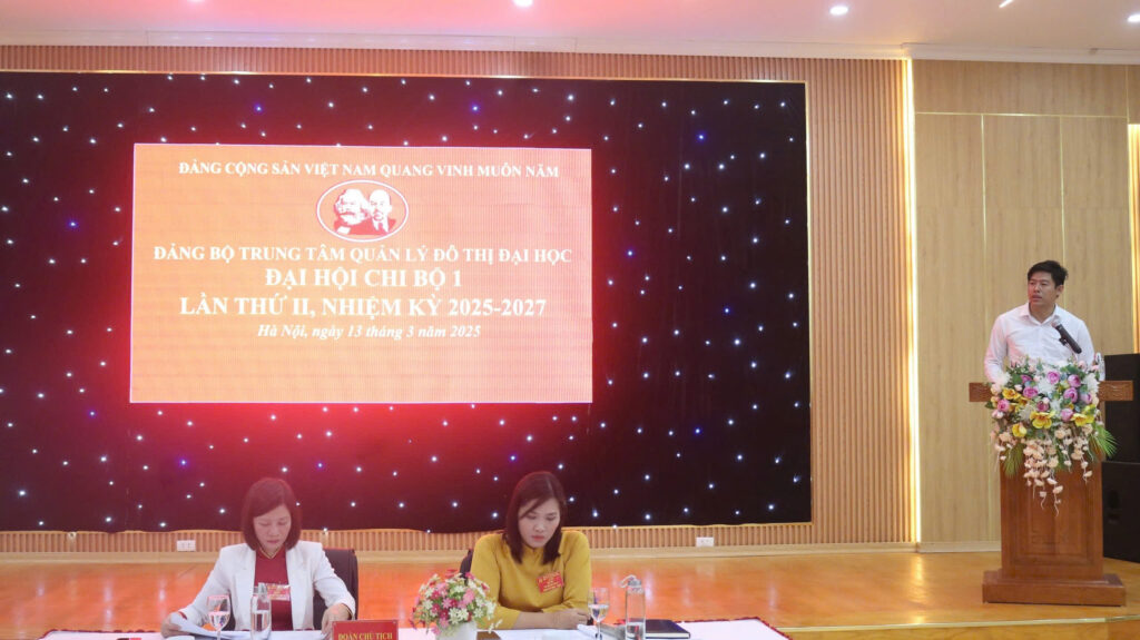 Sáng ngày 13/3/2025, dưới sự lãnh đạo của Đảng bộ Trung tâm Quản lý đô thị đại học, Chi bộ 1 và Chi bộ 2 thuộc Trung tâm Quản lý đô thị đại học long trọng tổ chức Đại hội Chi bộ nhiệm kỳ 2025-2027. Đây là sự kiện chính trị quan trọng nhằm tổng kết những kết quả đạt được trong nhiệm kỳ vừa qua, đề ra phương hướng hoạt động cho nhiệm kỳ mới và bầu Ban Chi ủy có đủ năng lực, phẩm chất lãnh đạo Chi bộ trong thời gian tới.