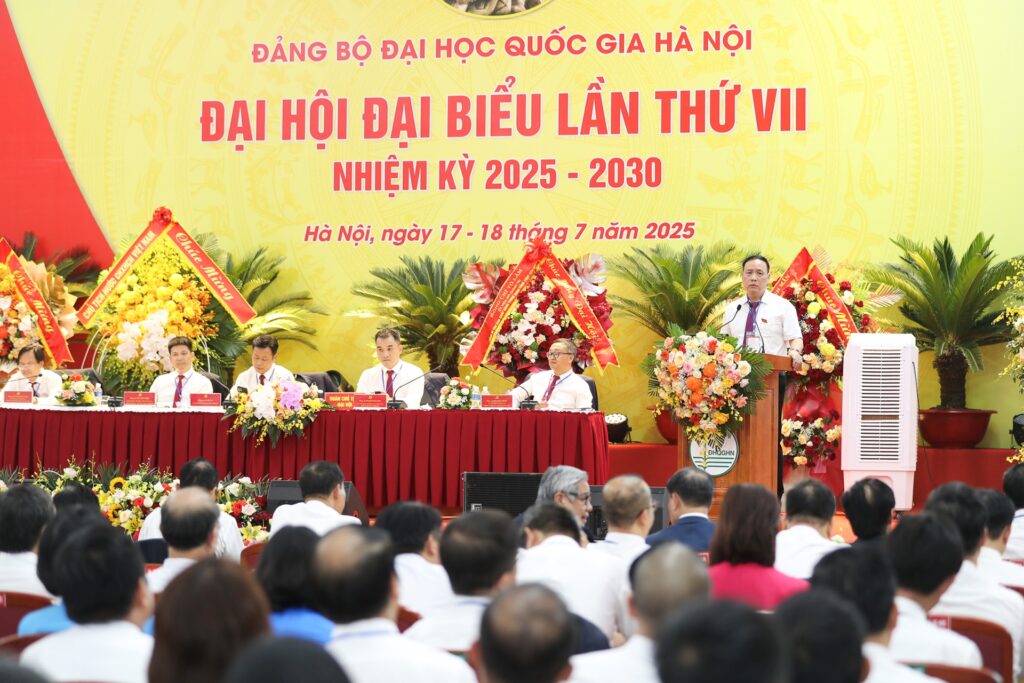 Trong diễn văn khai mạc, Bí thư Đảng ủy, Giám đốc ĐHQGHN Lê Quân cho biết, Đại hội đại biểu Đảng bộ ĐHQGHN lần thứ VII diễn ra vào thời điểm cả dân tộc đang chuyển mình mạnh mẽ để vươn lên phát triển. Trong bối cảnh đó, toàn thể cán bộ, đảng viên, học sinh, sinh viên ĐHQGHN bày tỏ niềm tin sâu sắc vào sự lãnh đạo của Đảng; ra sức thi đua, phấn đấu xây dựng, phát triển ĐHQGHN trở thành đại học đổi mới sáng tạo hàng đầu thế giới.