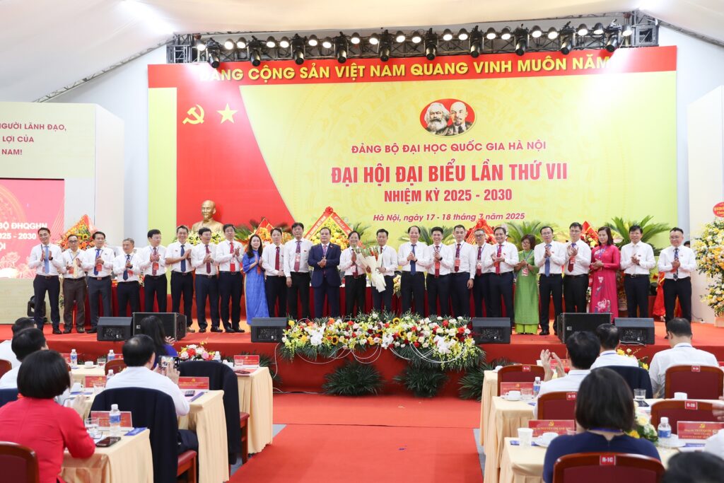 Thay mặt Ban Chấp hành mới, Bí thư Đảng ủy ĐHQGHN Lê Quân khẳng định, Đại hội đại biểu ĐHQGHN lần thứ VII đã thành công tốt đẹp. Thành công của Đại hội sẽ tạo ra khí thế trong toàn Đảng bộ, giúp cán bộ, đảng viên và học sinh, sinh viên ĐHQGHN tự tin, sáng tạo, vững bước trên chặng đường phát triển mới. Sau Đại hội, các tổ chức cơ sở đảng phải chủ động lên kế hoạch đưa Nghị quyết của Đại hội vào thực tiễn thông qua các chương trình hành động cụ thể. Đại hội kêu gọi toàn thể cán bộ, đảng viên, học sinh, sinh viên ĐHQGHN đồng tâm, hiệp lực, ra sức thi đua thực hiện thắng lợi Nghị quyết Đại hội đại biểu lần thứ VII, đưa ĐHQGHN lên một tầm cao mới, góp phần xứng đang vào sự nghiệp phát triển của Thủ đô và đất nước.