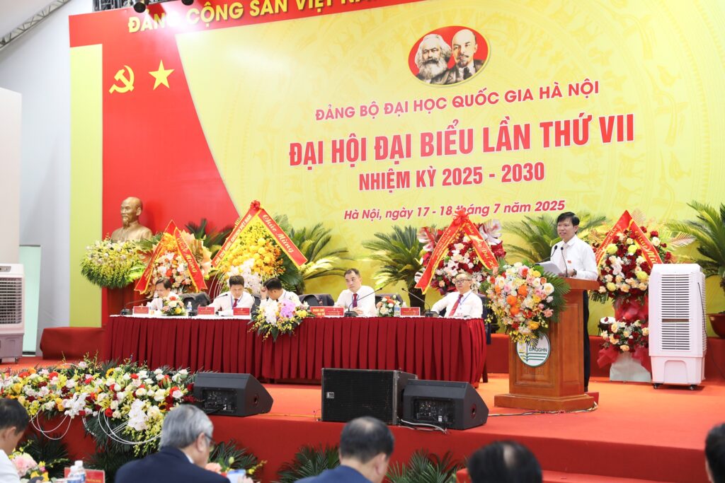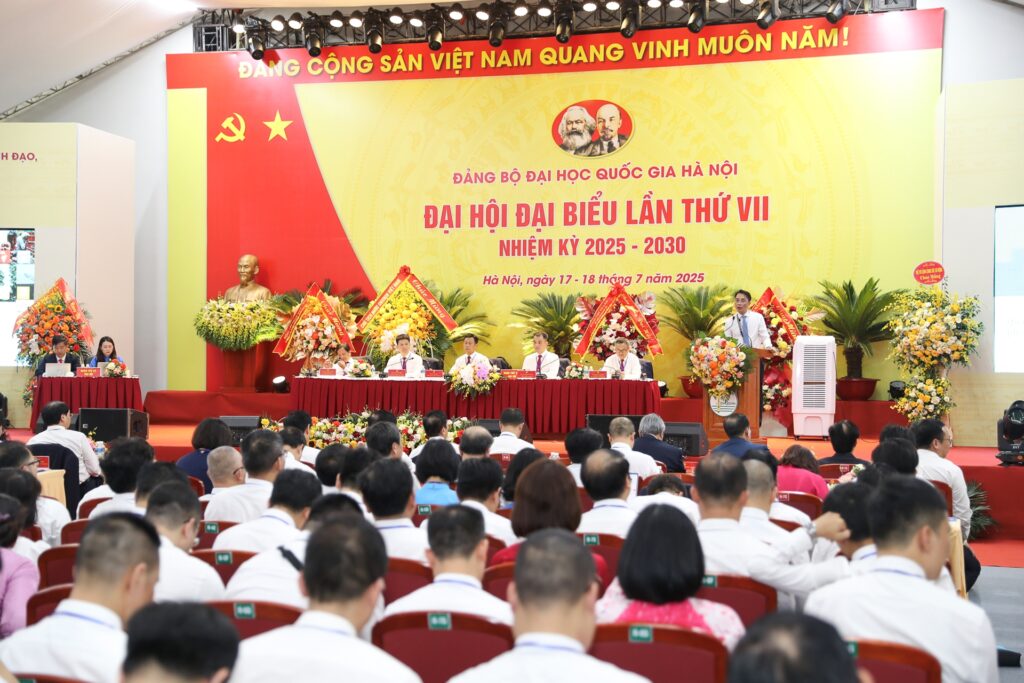 Trong diễn văn khai mạc, Bí thư Đảng ủy, Giám đốc ĐHQGHN Lê Quân cho biết, Đại hội đại biểu Đảng bộ ĐHQGHN lần thứ VII diễn ra vào thời điểm cả dân tộc đang chuyển mình mạnh mẽ để vươn lên phát triển. Trong bối cảnh đó, toàn thể cán bộ, đảng viên, học sinh, sinh viên ĐHQGHN bày tỏ niềm tin sâu sắc vào sự lãnh đạo của Đảng; ra sức thi đua, phấn đấu xây dựng, phát triển ĐHQGHN trở thành đại học đổi mới sáng tạo hàng đầu thế giới.