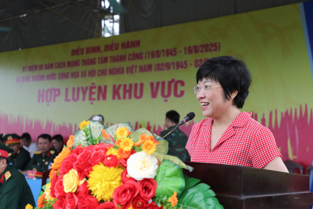 Tại buổi gặp mặt, đồng chí Nguyễn Thị Thảo đã thay mặt lãnh đạo và cán bộ viên chức ĐHQGHN gửi lời chúc sức khỏe, động viên tinh thần và quà lưu niệm cho đại diện các khối. Đồng chí bày tỏ niềm tự hào khi ĐHQGHN được Quân đội Việt Nam tin tưởng lựa chọn làm địa điểm tập luyện cho lực lượng nòng cốt trong lễ diễu binh quốc gia. Đây không chỉ là vinh dự của ĐHQGHN, mà còn là trách nhiệm lớn lao trong việc góp phần bảo đảm điều kiện sinh hoạt và hậu cần tốt nhất cho các cán bộ, chiến sĩ đang thực hiện nhiệm vụ chính trị đặc biệt.