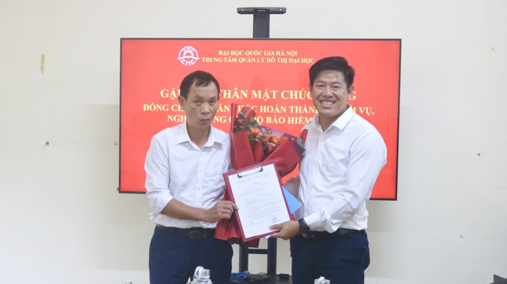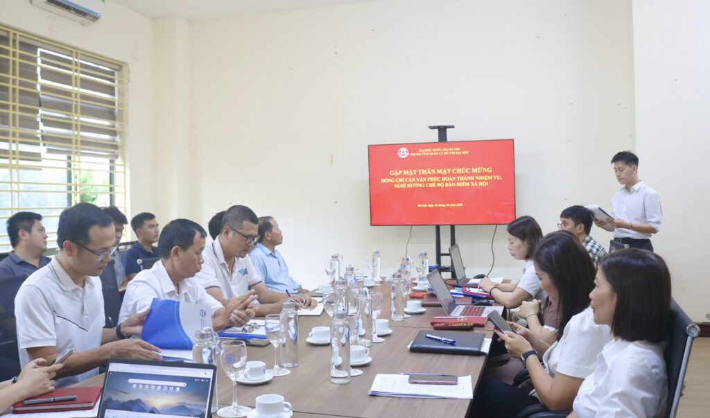 Sáng ngày 25/9/2025, Trung tâm Quản lý đô thị đại học tổ chức buổi gặp mặt thân mật để chúc mừng đồng chí Cấn Văn Phúc – Tổ phó Tổ đất đai, môi trường, Phòng Quản lý đất đai và An ninh trật tự, nghỉ hưu hưởng chế độ bảo hiểm xã hội từ ngày 01/10/2025.