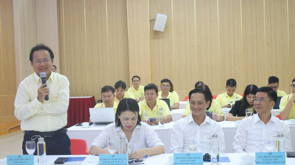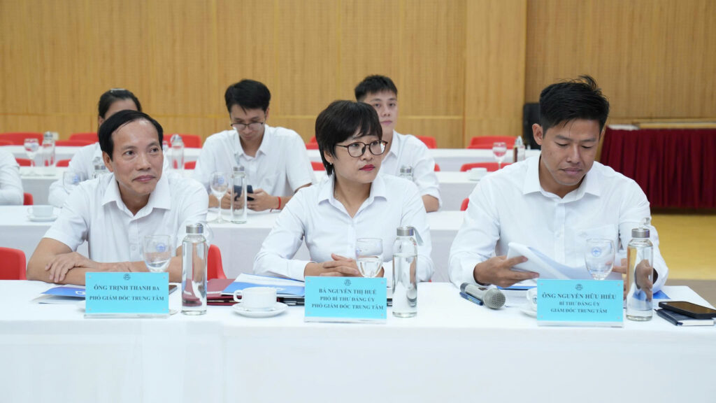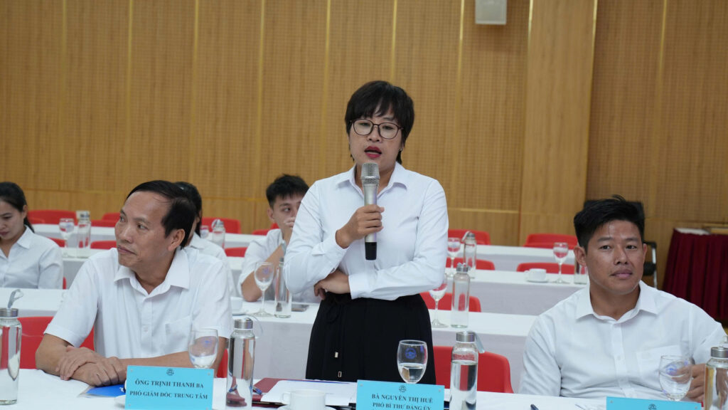Từ phía Trung tâm Quản lý đô thị đại học, bà Nguyễn Thị Huế, Phó Giám đốc Trung tâm đã chia sẻ những kinh nghiệm toàn diện trong công tác quản trị đô thị đại học. Báo cáo việc thực hiện chuyển đổi số trong quản trị đô thị như ứng dụng phần mềm trong công tác quản trị công việc, đánh giá xếp loại mức độ hoàn thành nhiệm vụ của VC,NLĐ hàng tháng, quý qua phần mềm quản lý công việc.