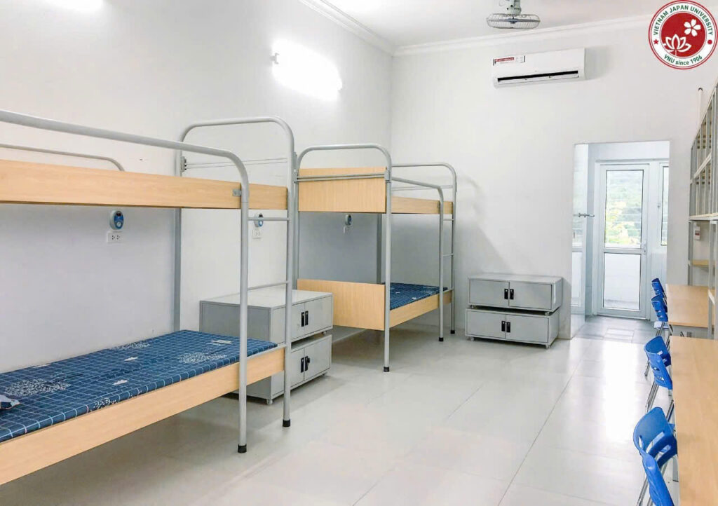 – Phòng ở khang trang: Mỗi phòng được trang bị đầy đủ nội thất chất lượng như giường, tủ, bàn học.